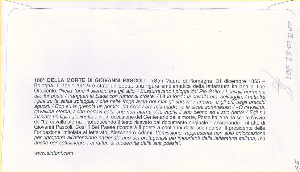 IT3366 - 06/04/2012 - CAB1462 - 1v - Giovanni Pascoli, nel centenario della scomparsa