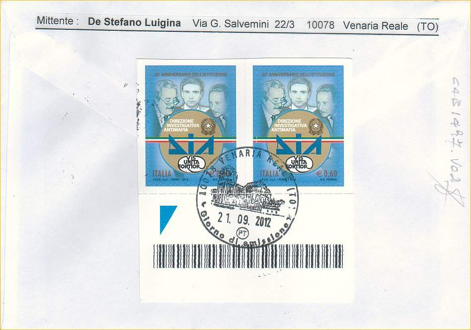 IT3396 - 21/09/2012 - CAB1497 - 1v - 20º Anniversario della Direzione Investigativa Antimafia, DIA