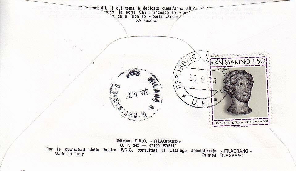 RSM 1978 - 1000 S195 Serie cpl. 2 val. - Europa Unita CEPT - Porta S.Francesco ; Porta della Ripa