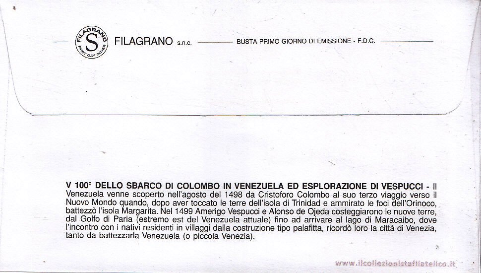 IT2400 - 12/08/1998 - 1v - 5º centenario dello sbarco di Cristoforo Colombo in Venezuela e dell esplorazione di Amerigo Vespucci