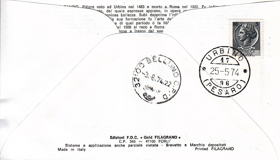IT1249 - 25/05/1974 - 5v - Artisti italiani 2Ș emis.: Borromini , Carriera , Giambellino , Mantegna , Raffaello