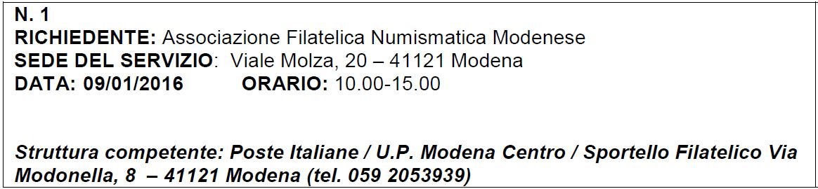 Diramazione n. 01 Calendario Servizi Temporanei del 08/01/2016