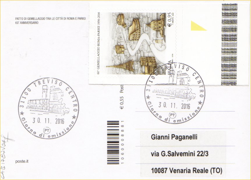 IT3804 - 30/11/2016 - CAB1787 -1v - 60° Anniversario del patto di gemellaggio Roma-Parigi