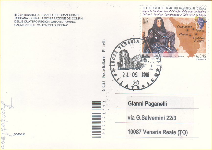 IT3779 - 24/09/2016 - CAB1767 - 1v - 300º anniversario del bando del Granduca di Toscana