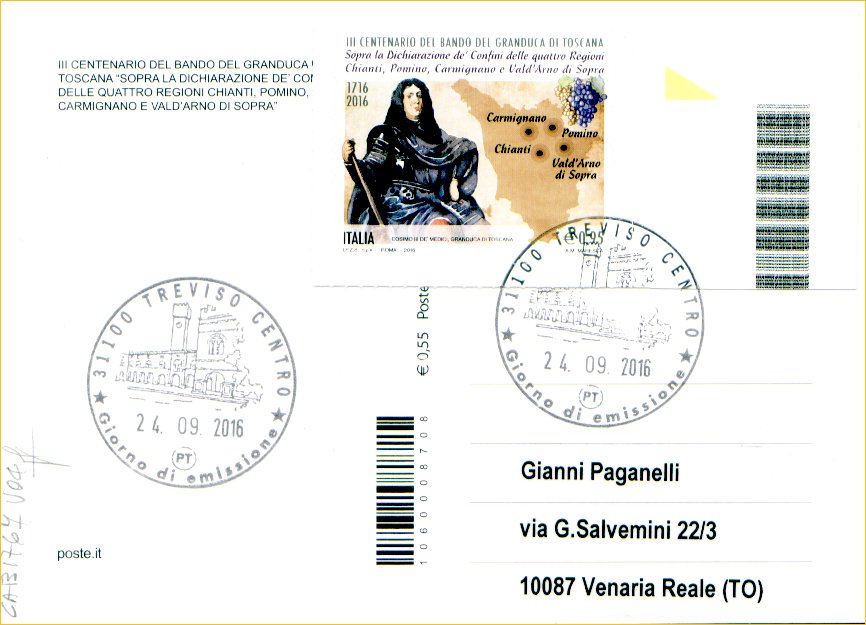 IT3779 - 24/09/2016 - CAB1767 - 1v - 300º anniversario del bando del Granduca di Toscana