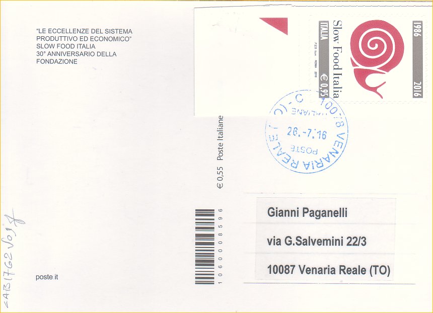 IT3770 - 26/07/2016 - CAB1762 - 1v - Slow Food Italia - € 0,95