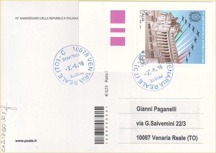 IT3758 - 02/06/2016 - CAB1760 - 1v - 70º anniversario della Repubblica Italiana