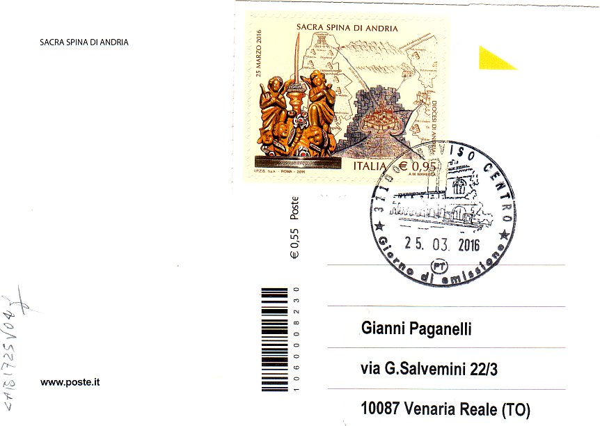 IT3730 - 25/03/2016 - CAB1725 - 1v - Sacra Spina di Adria - € 0,95T