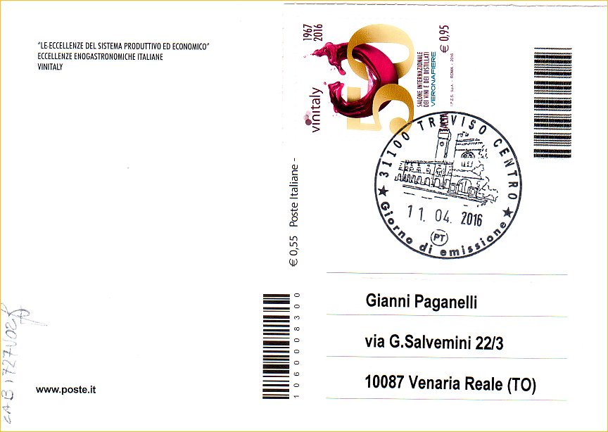 IT3731 - 11/04/2016 - CAB1727 - 2v - Vinitaly 2016 - € 0,95
