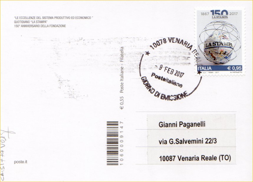IT3811 - 09/02/2017 - CAB1794 - 1v - 150° anniversario della fondazione del quotidiano La Stampa
