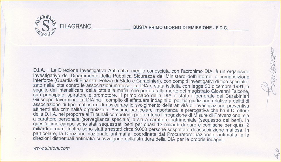 IT3396 - 21/09/2012 - CAB1497 - 1v - 20º Anniversario della Direzione Investigativa Antimafia, DIA
