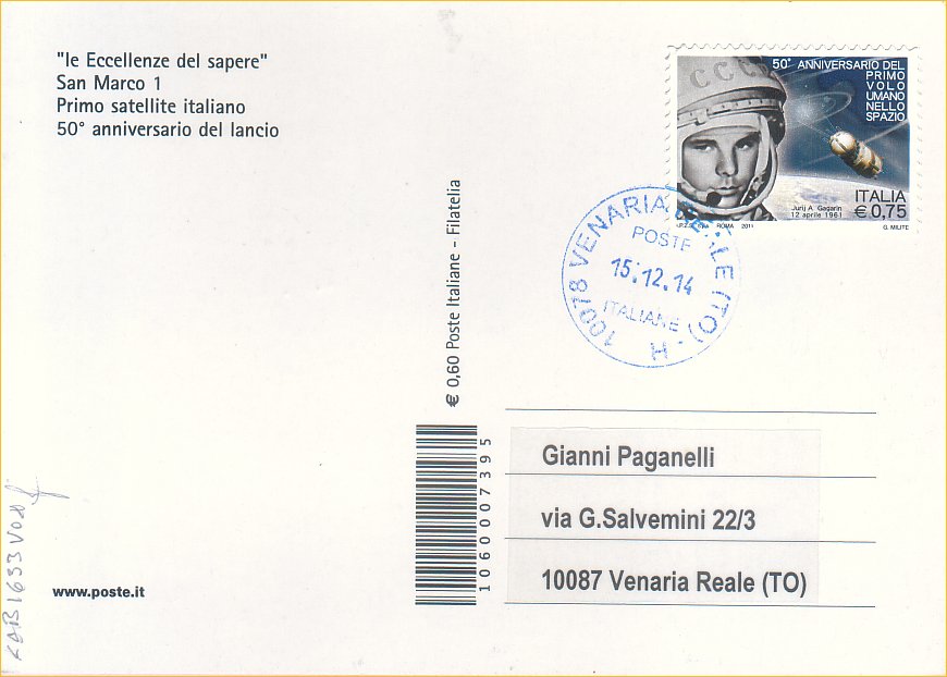 IT3605 - 15/12/2014 - CAB1633 - 1v - 50° anniversario del lancio del San Marco 1