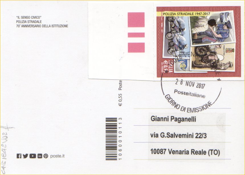 IT3865 - 28/11/2017 - CAB1842 - 1v - 70º anniversario della Polizia Stradale