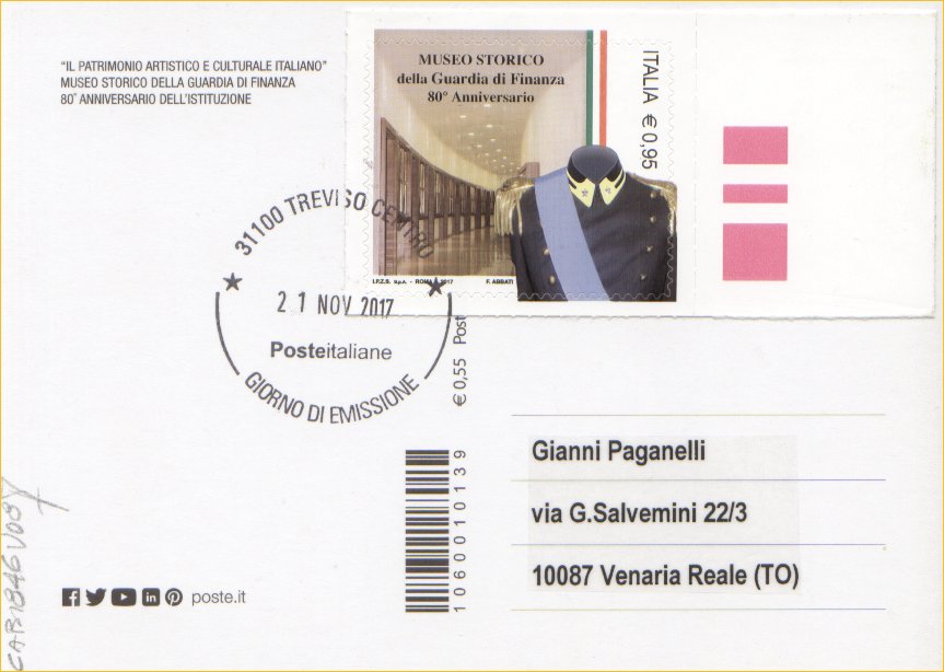 IT3862 - 21/11/2017 - CAB1846 - 1v - 80° anniversario del museo storico della guardia di finanza