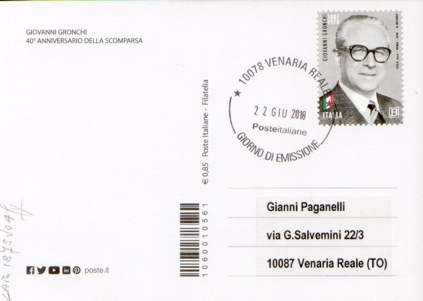 10078 Venaria Reale - Giorno di emissione