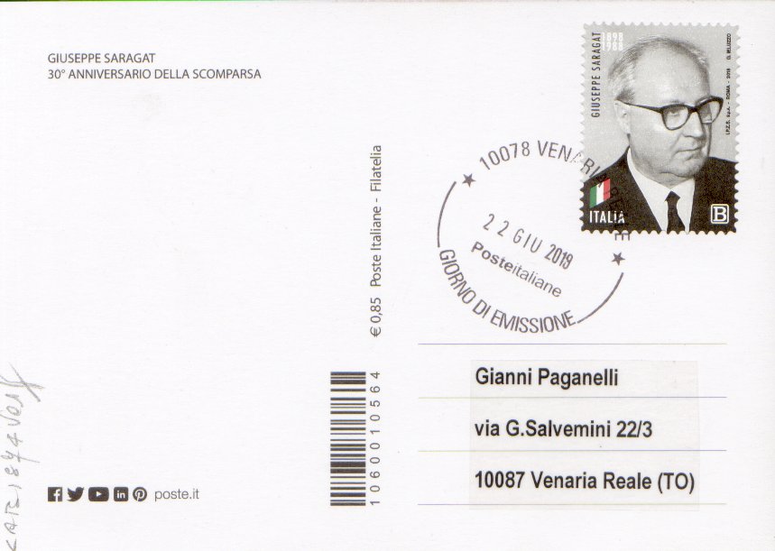 10078 Venaria Reale - Giorno di emissione