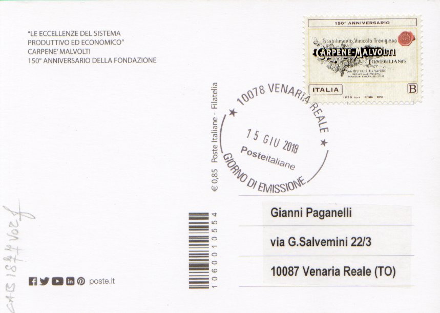 IT3890 - 15/06/2018 - CAB1877 - 1v - 150º anniversario della fondazione della cantina Carpenè Malvolti