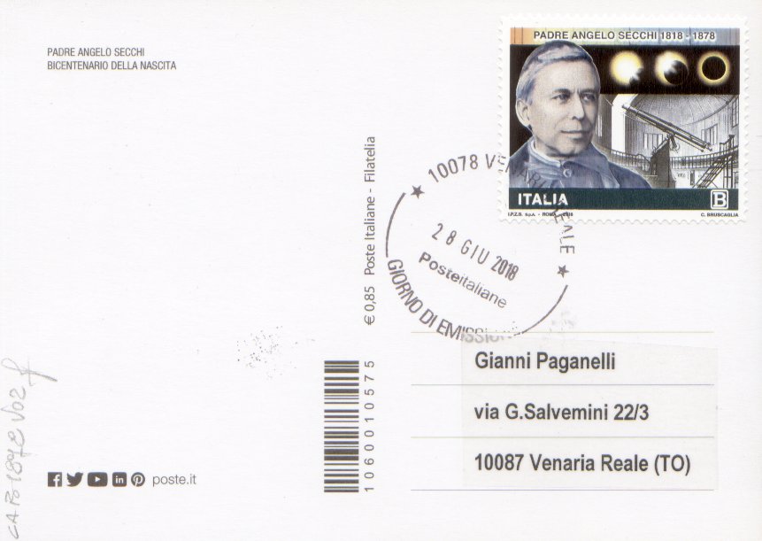 IT3894 - 28/06/2018 - CAB1878 - 1v - Padre Angelo Secchi