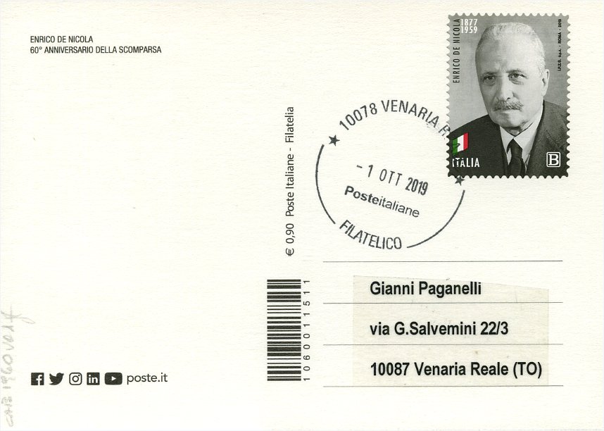 2019 IT - EM0046 - CAB1960 - 1v - 01/09/2019 - 60º anniversario della morte di Enrico De Nicola