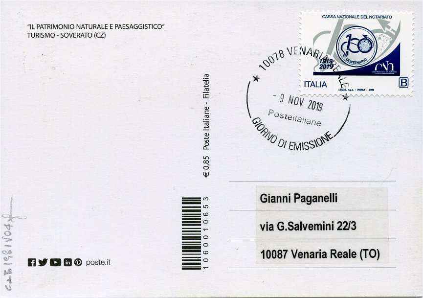 2019 IT - EM0059 - CAB1981 - 1v - 09/11/2019 - Cassa Nazionale del Notariato