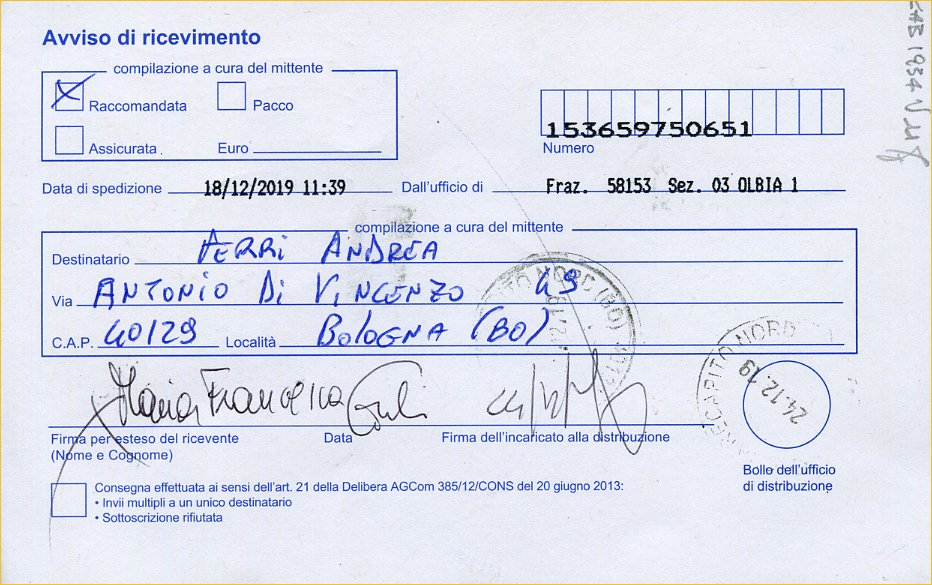 raccomandata nr. 153659760651 .