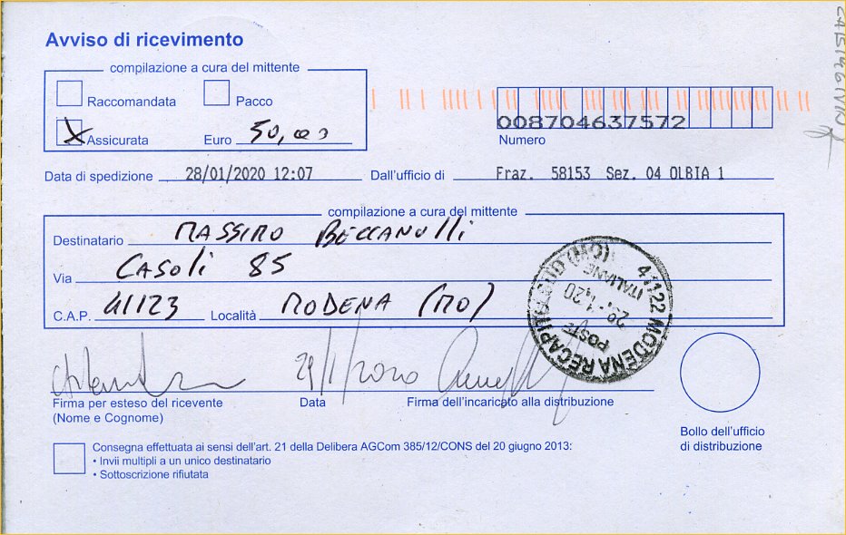 raccomandata nr. 008704637572 .