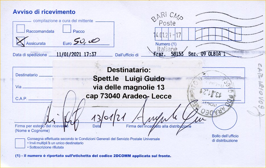 raccomandata nr. 009317035050 .