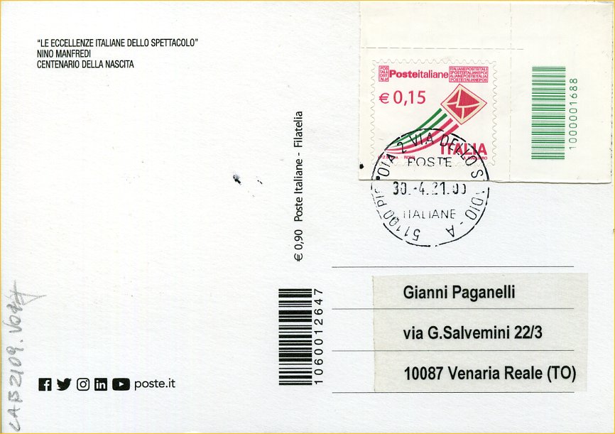 2021 IT - EM0014 - CAB2107 - 3v - 30/04/2021 - Eccellenze dello spettacolo G. Masini , A. Valli e N. Manfredi