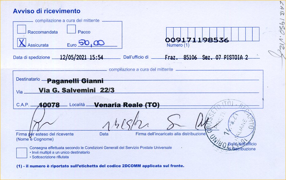 raccomandata n. 009171198536 .