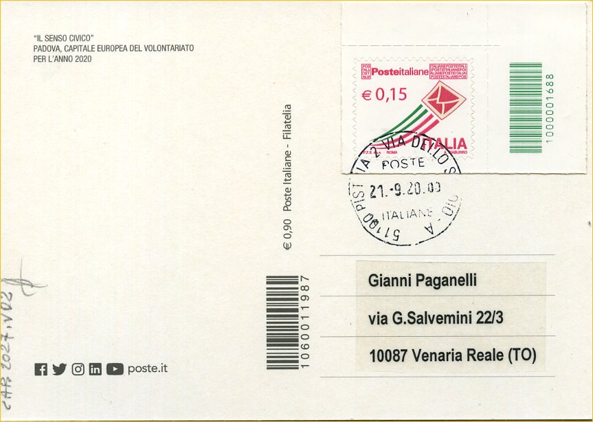 2020 IT - EM0032 - CAB2027 - 1v - 21/09/2020 - Padova capitale europea del volontariato