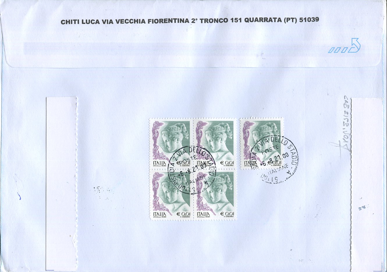 i - indirizzo di spedizione per l'Italia presente sulla busta