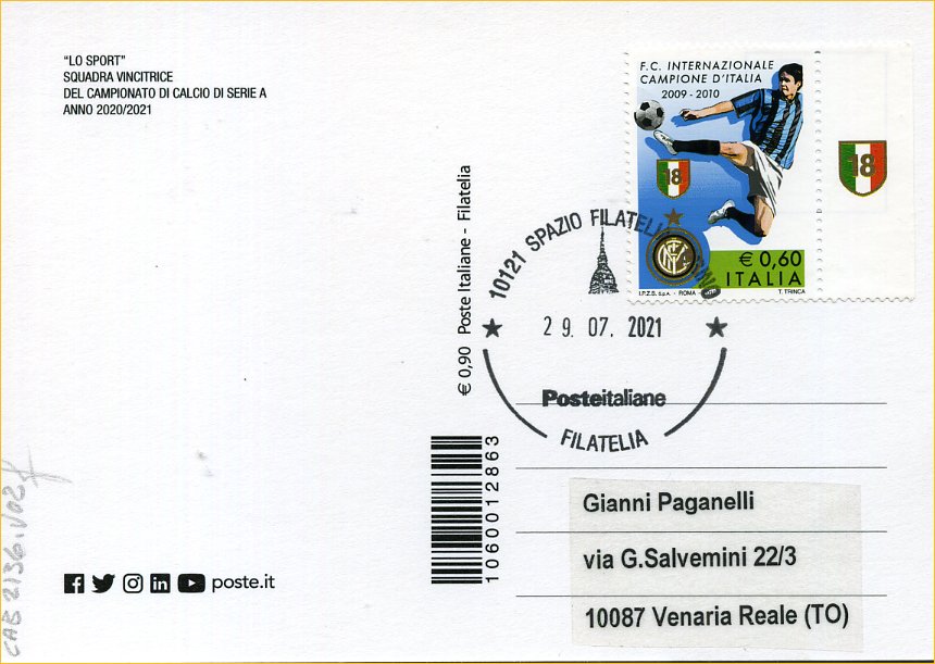 2021 IT - EM0038 - CAB2136 - 1v - 30/07/2021 - Inter campione d´Italia