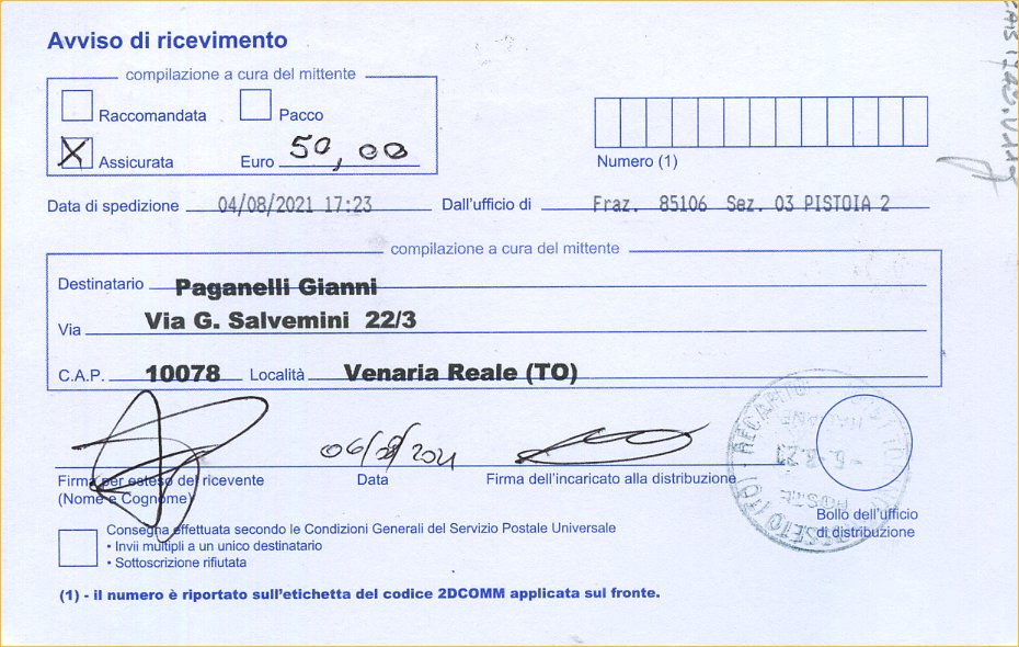 raccomandata nr. 009309786508 .