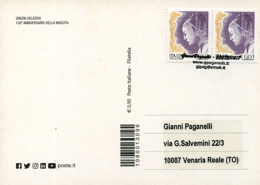 2021 IT - EM0051 - CAB2149 - 1v - 27/09/2021 - 150º anniversario della nascita di Grazia Deledda