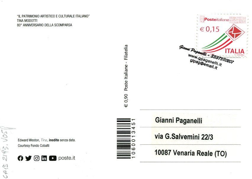 2022 IT - EM0006 - CAB2193 - 1v - 18/02/2022 - 80º anniversario della morte di Tina Modotti