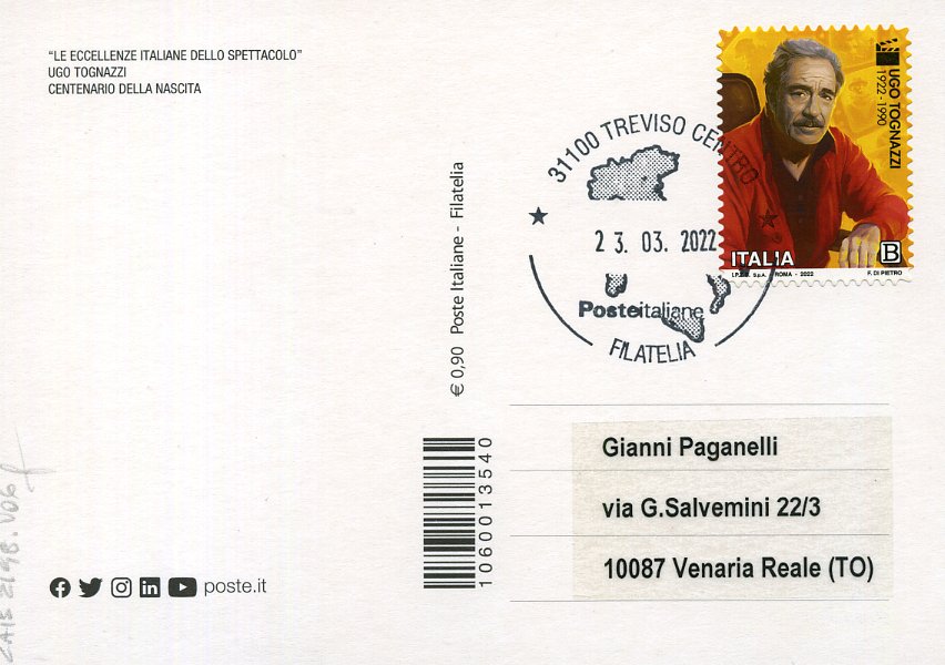 2022 IT - EM0011 - CAB2198 - 1v - 23/03/2022 - 100º anniversario della nascita di Ugo Tognazzi