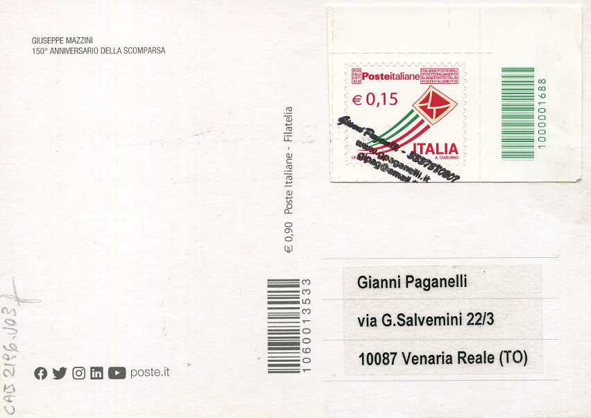 2022 IT - EM0010 - CAB2196 - 1v - 10/03/2022 - 150º anniversario della morte di Giuseppe Mazzini
