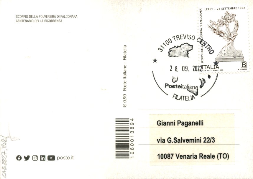 2022 IT - EM0042 - CAB2227 - 1v - 28/09/2022 - 100º anniversario dello scoppio della polveriera di Falconara