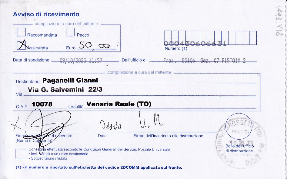 raccomandata nr. 000430606631 .
