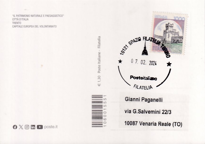 | Descrizione timbro di invio:   | 10121 Spazio Filatelia Torino - Filatelia |