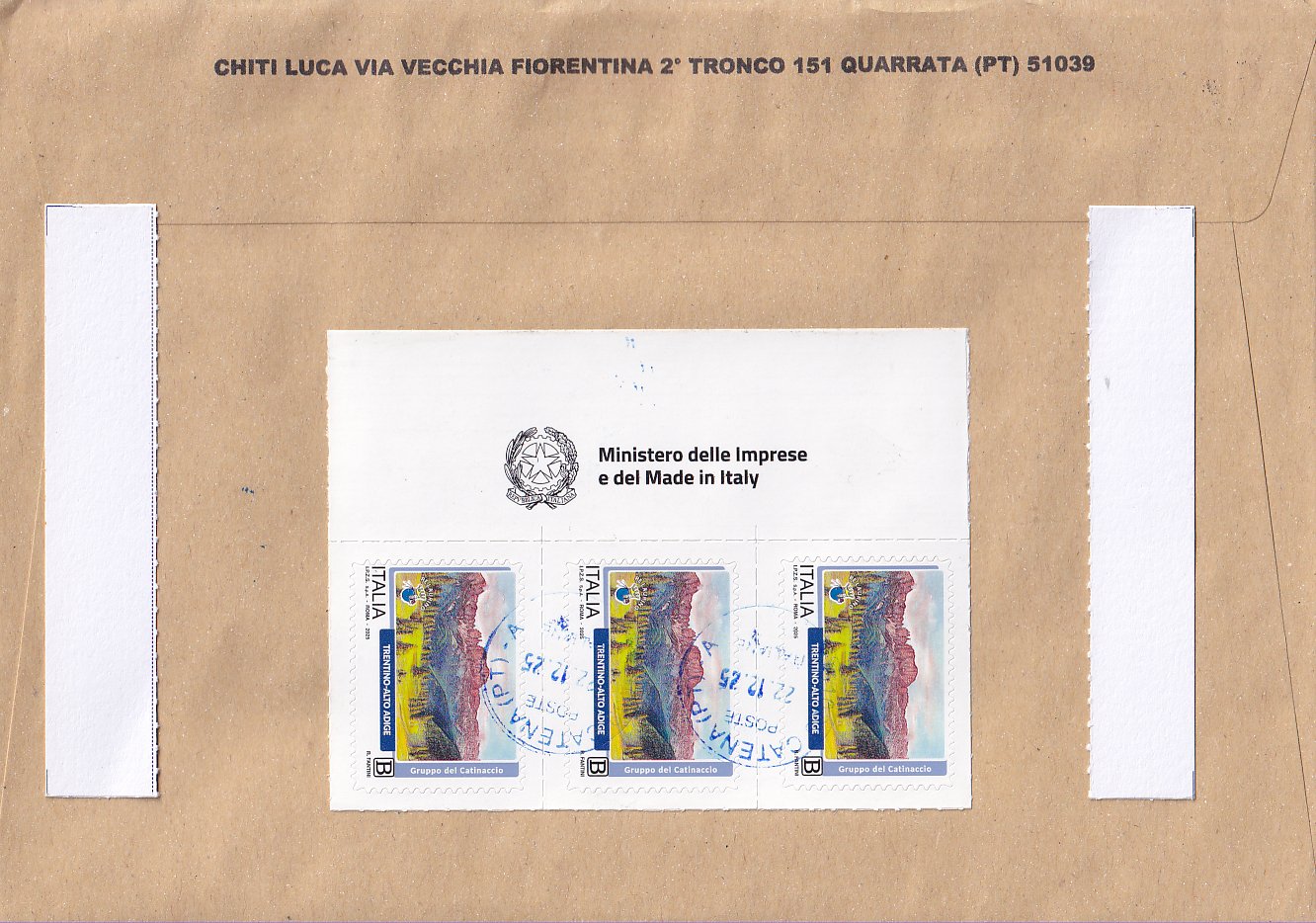i - indirizzo di spedizione per l'Italia presente sulla busta