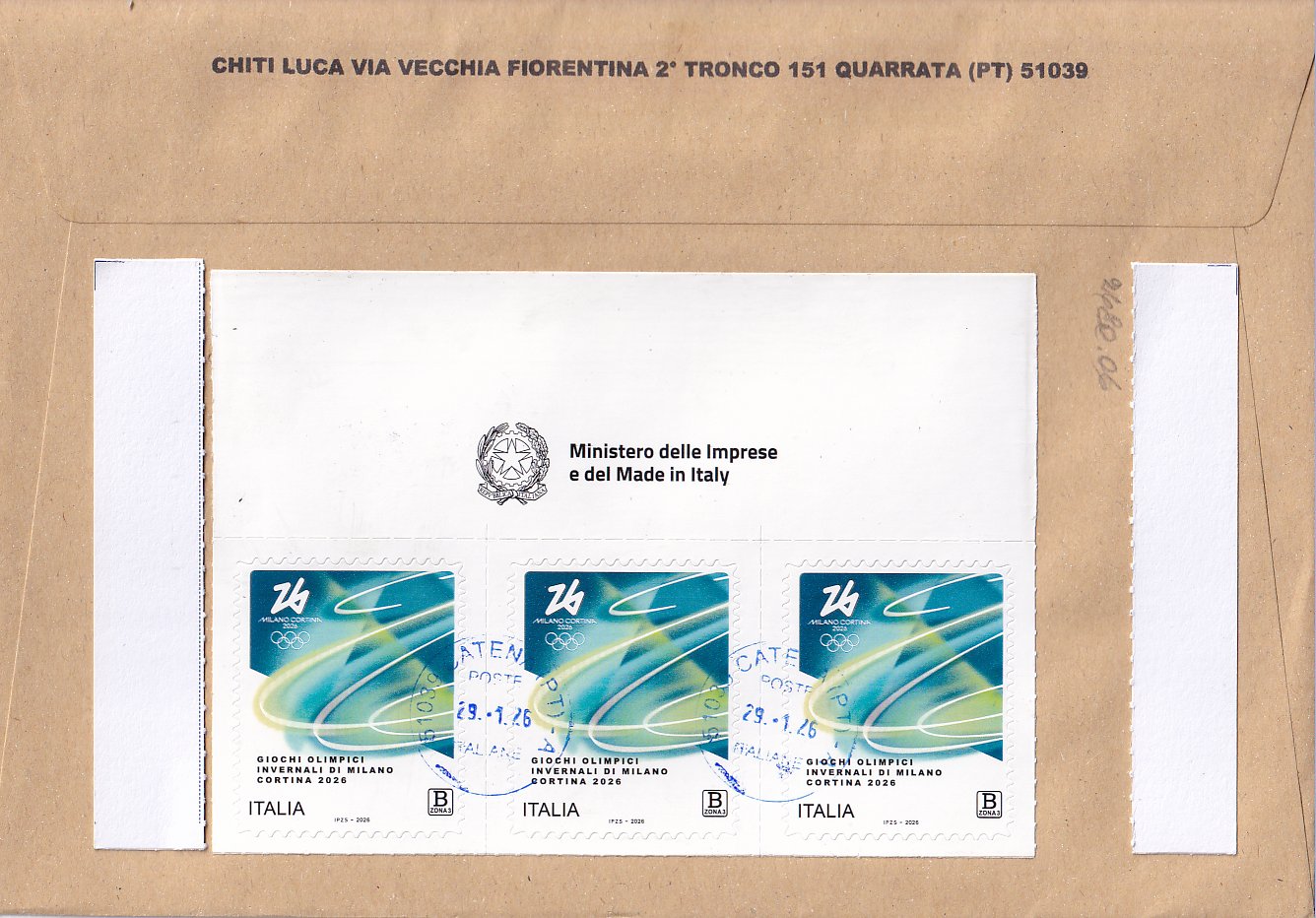 i - indirizzo di spedizione per l'Italia presente sulla busta