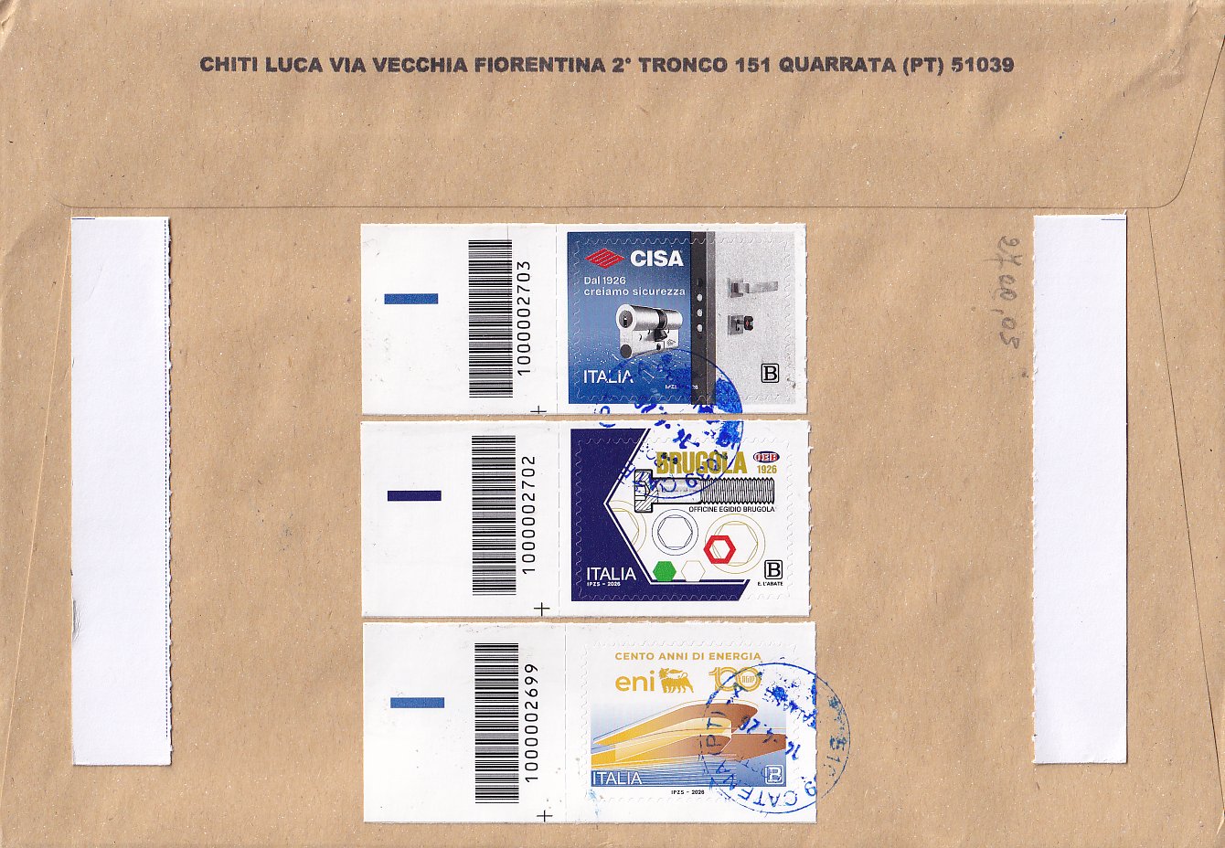 i - indirizzo di spedizione per l'Italia presente sulla busta